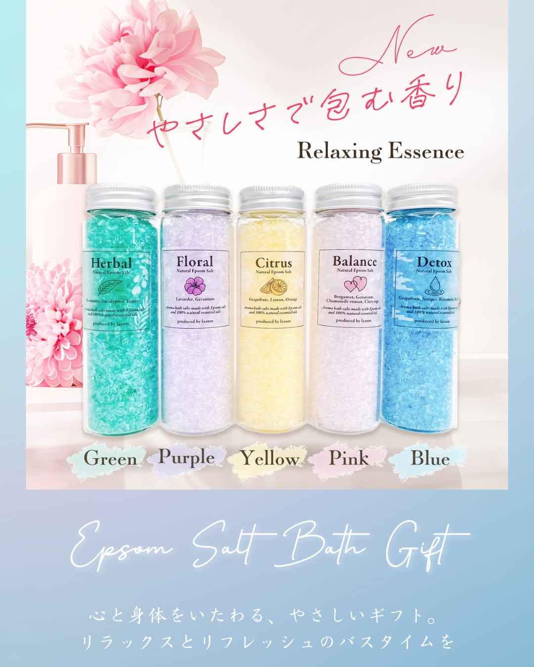 《おすすめギフト》エプソムソルト *Botanical Selection* 〜厳選された5種類の香り(ギフトBOX入り)〜