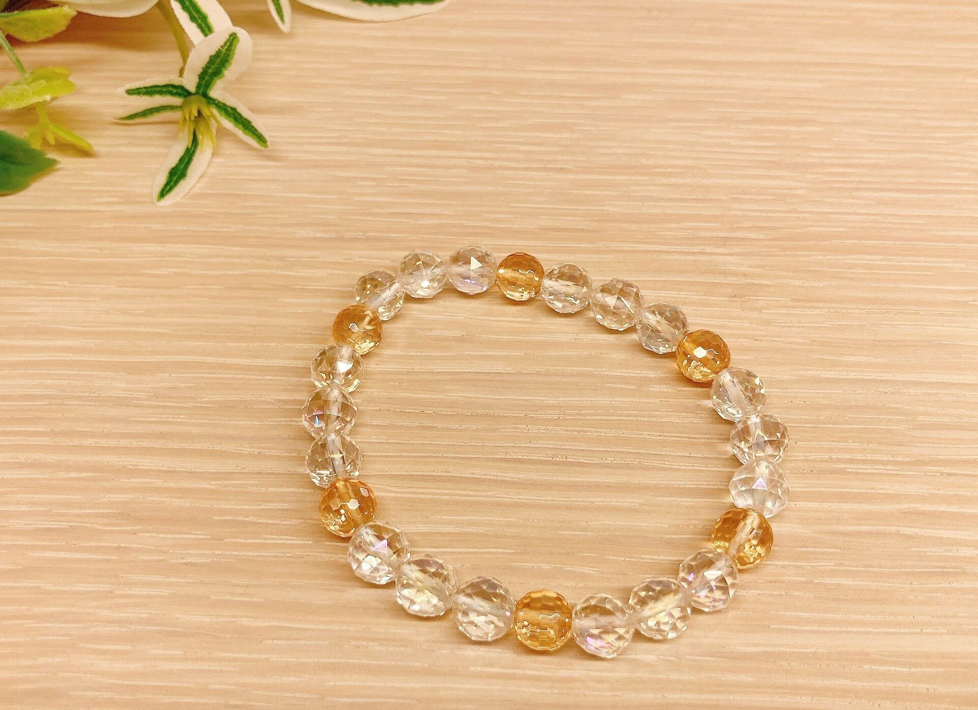 水晶に金運の効果を加えたパワーストーンで、仕事運や対人関係、金運の向上などの効果が期待されています。