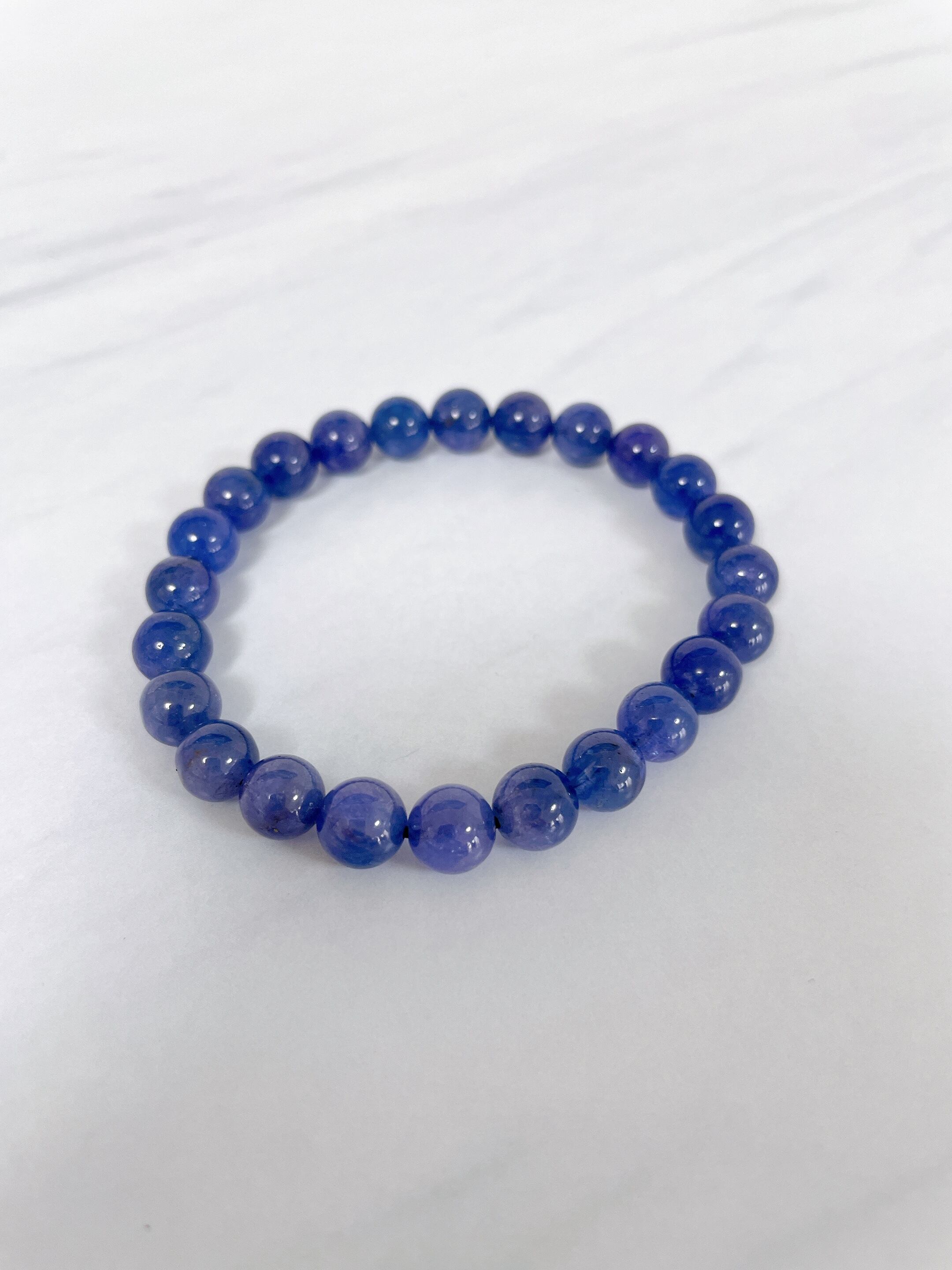 タンザナイトの美しい輝きを堪能したい方にぜひおすすめしたい、8mmのタンザナイトビーズブレスレットです。