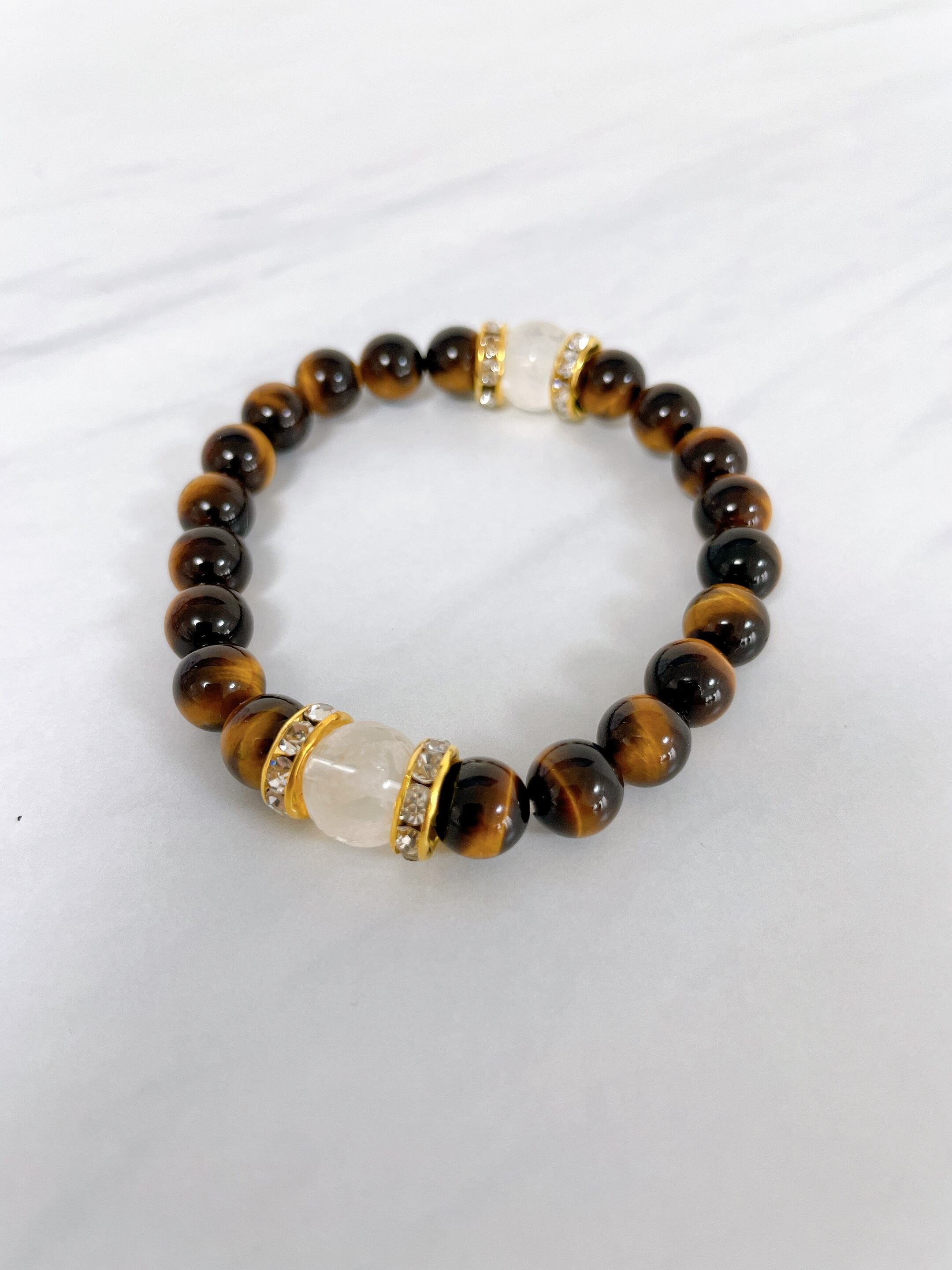 タイガーアイAAA・水晶(龍)・ロンデルゴールド 19㎝ =財運・仕事運を高める= 1-6