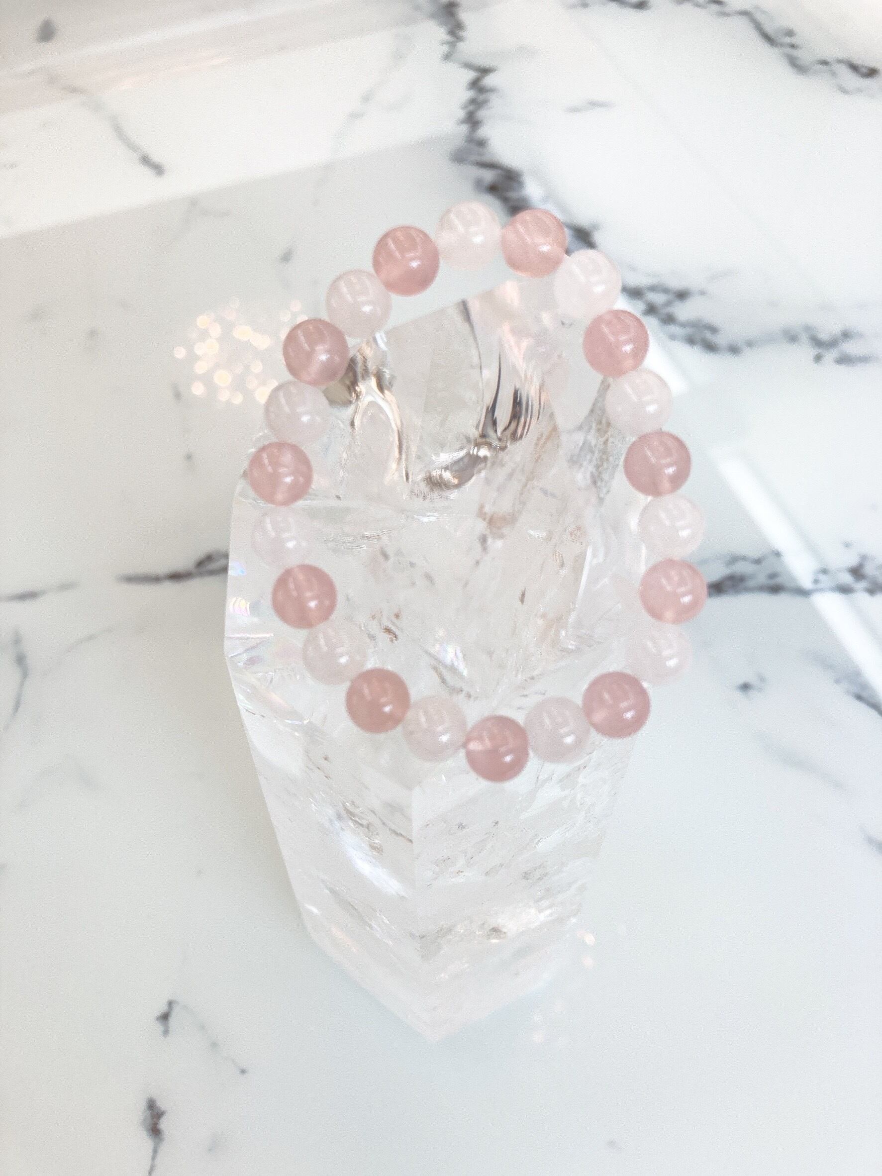 スノークォーツ8mm+ローズクォーツ8mm3A 16cm女性用