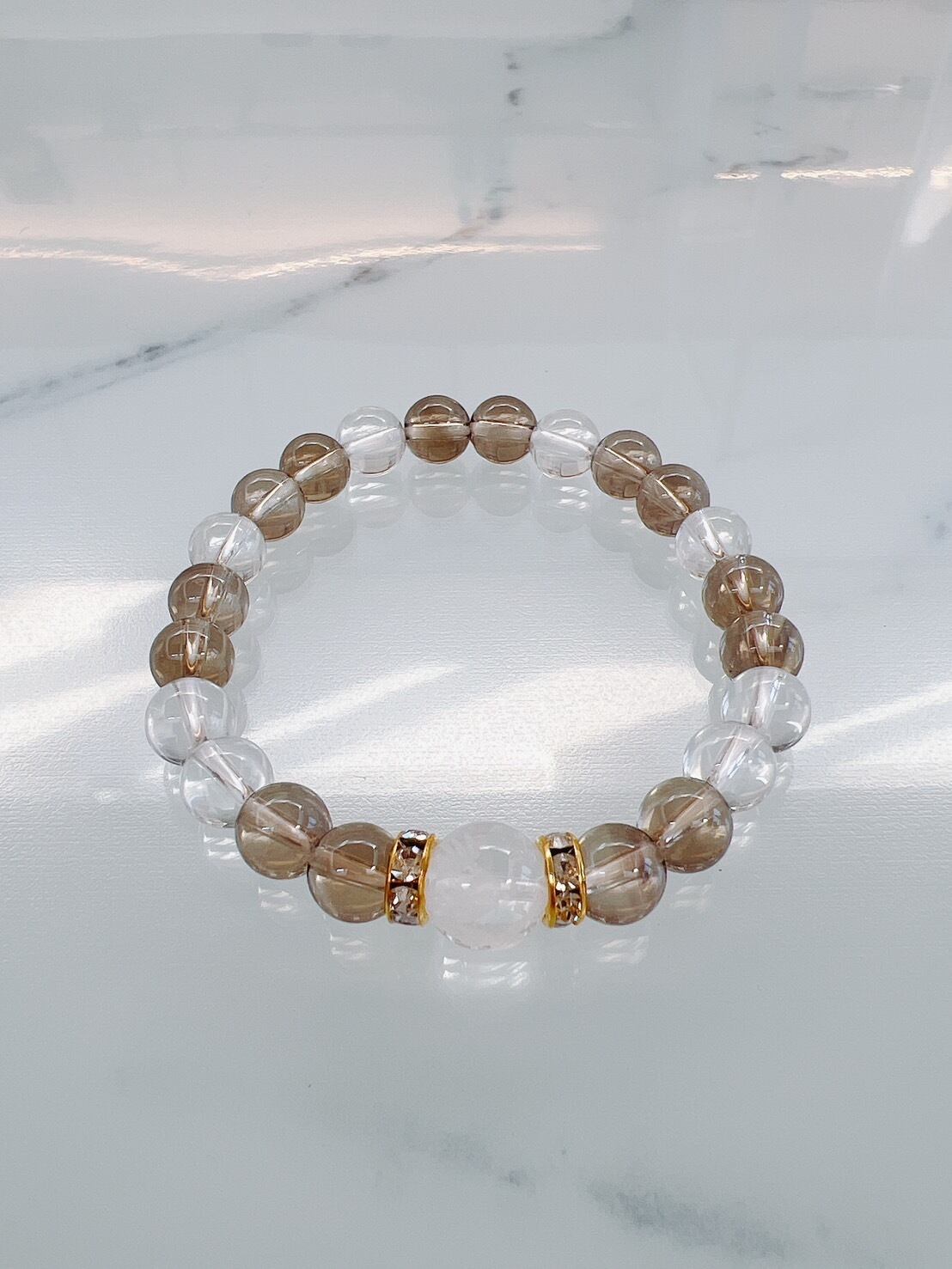 スモーキークォーツライト・水晶(龍)・ロンデルゴールド 16cm =人間的な成長を促進する効果= 33-1-1