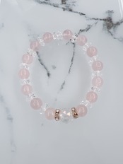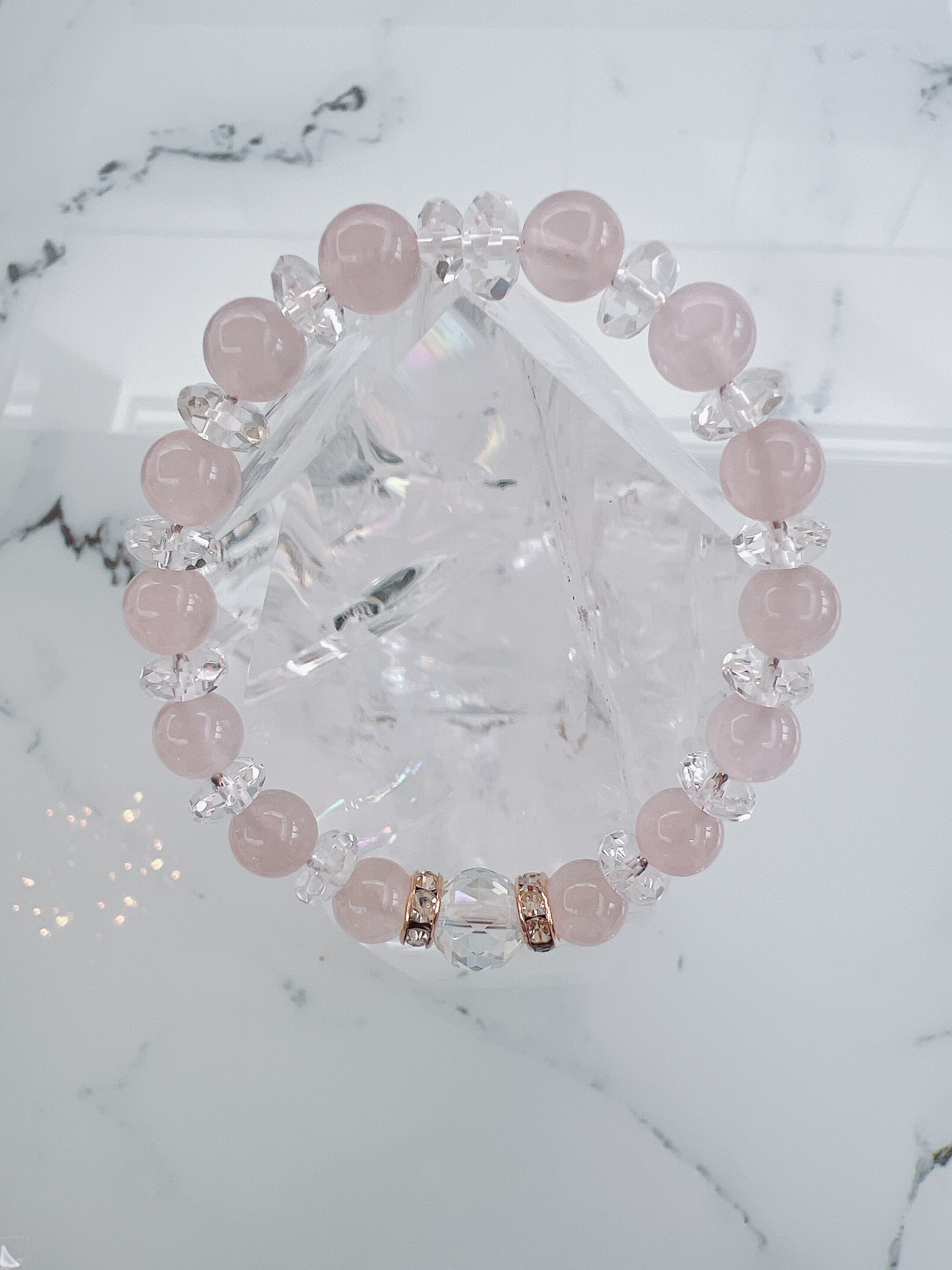 ローズクォーツ・レインボーオーラ・水晶(ボタンカット)・ロンデルゴールド 16cm =女性の美を輝かせる・エネルギーの浄化= 28-6