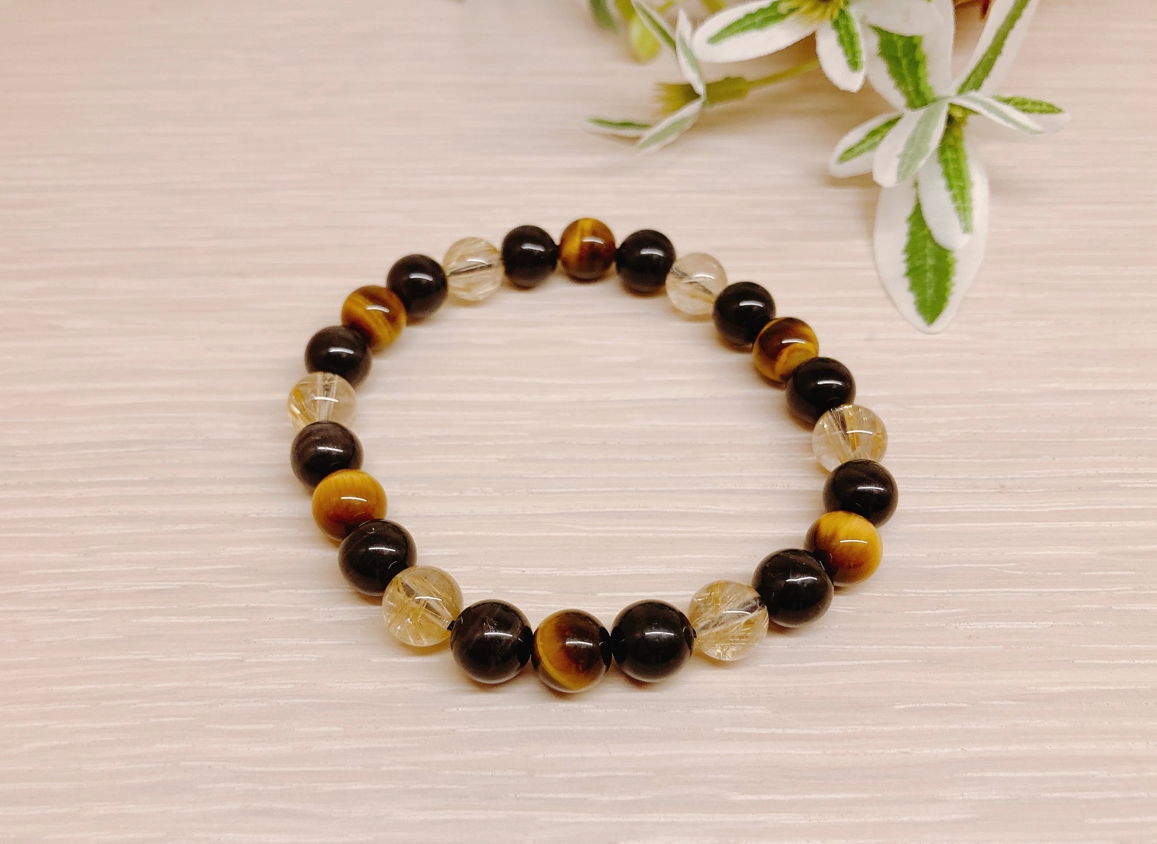 ブラックタイガーアイ・タイガーアイ・ルチルクオーツ 8mm 17cm =洞察力を高め、自信や勇気をもたらし決断力を与える= 35-3-1
