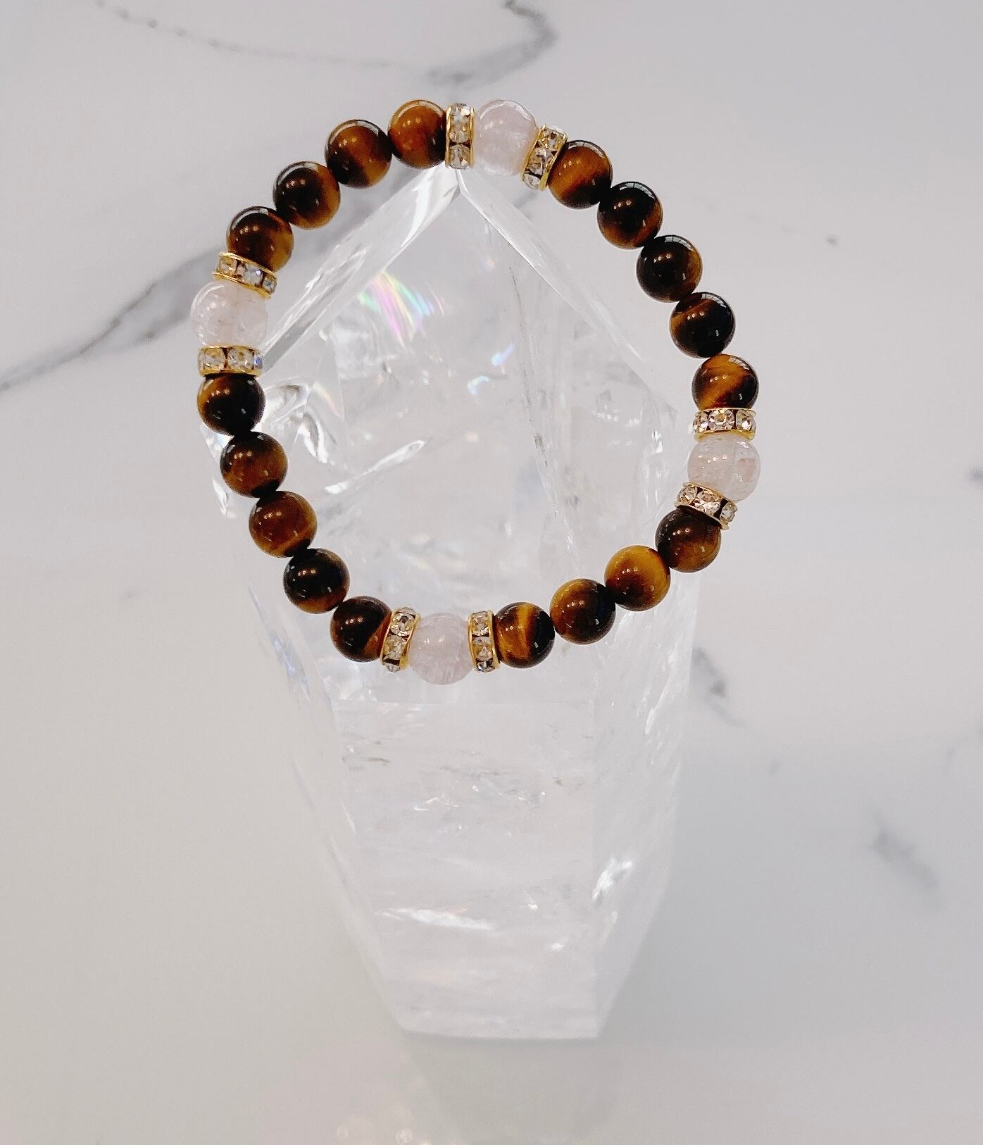 タイガーアイ・クンツァイト・ロンデルゴールド 17cm =自信や勇気、愛の力= 1-9-1